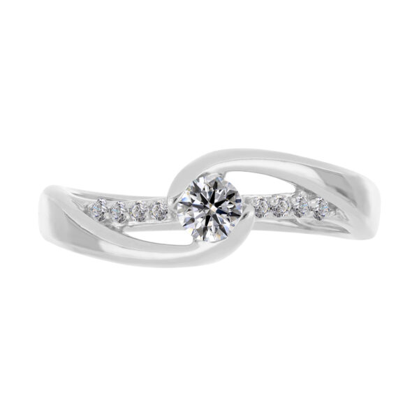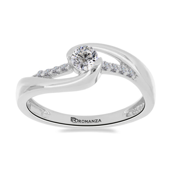 Anillo Solitario con Centro 0.20 Quilates y Montadura 0.08 Quilates de Diamante en Oro Blanco de 14 kt