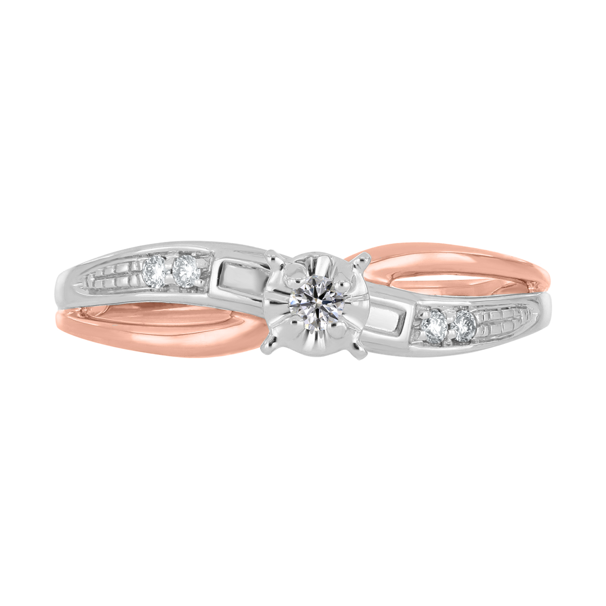 Anillo Solitario Ilusión con Centro 0.06 Quilates de Diamante en Oro Combinado de 14 kt