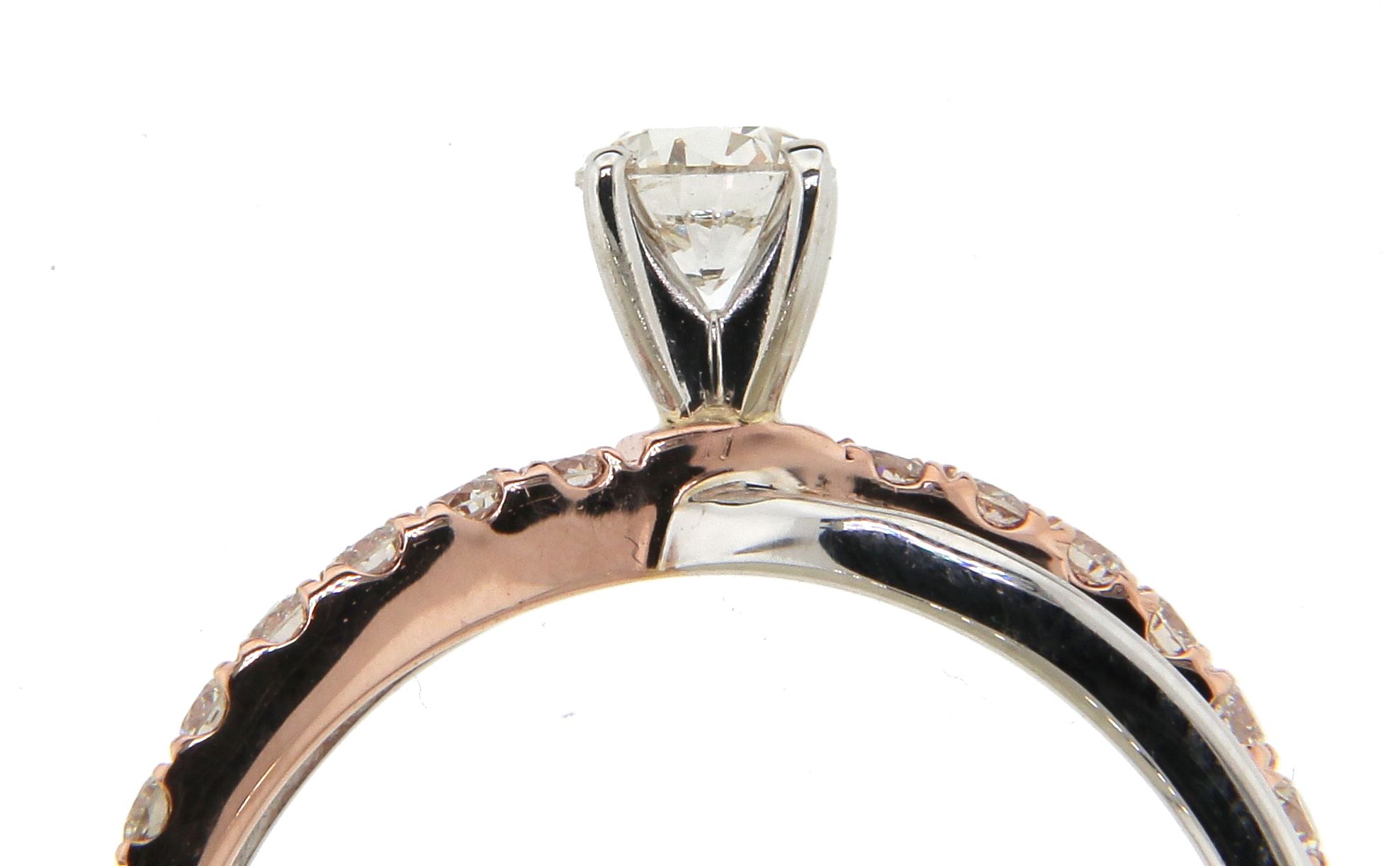 Anillo Solitario con Centro 0.30 Quilates y Montadura 0.19 Quilates de Diamante en Oro Combinado de 14 kt