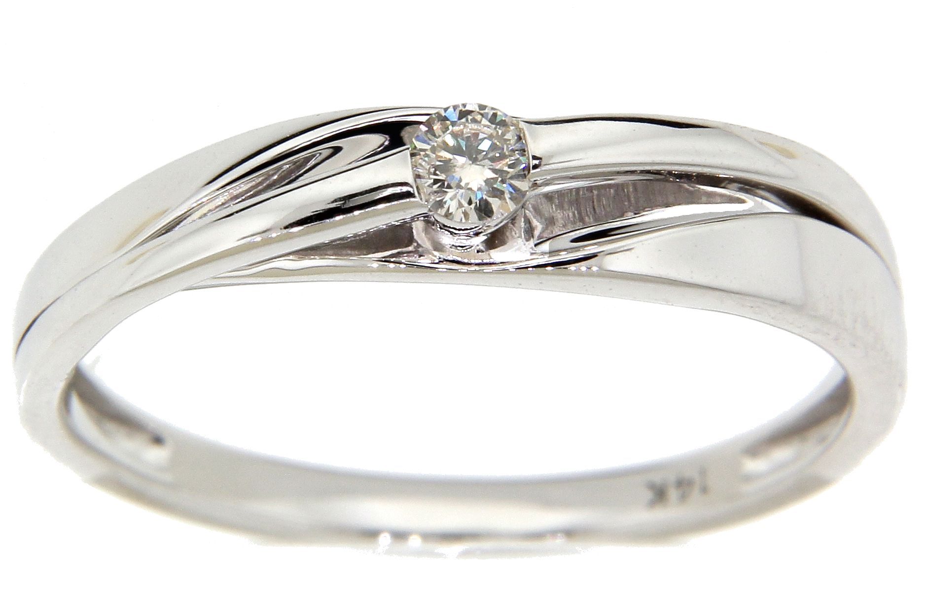 Anillo Solitario con Centro 0.08 Quilates de Diamante en Oro Blanco de 14 kt