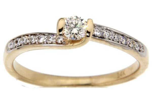 Anillo Solitario con Centro 0.17 Quilates y Montadura 0.12 Quilates de Diamante en Oro Amarillo de 14 kt