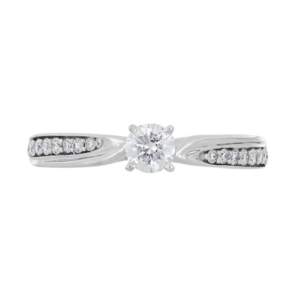 Anillo Solitario con Centro 0.30 Quilates y Montadura 0.17 Quilates de Diamante en Oro Blanco de 14 kt