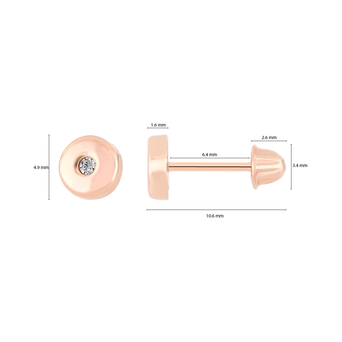 Aretes Bebé o Nña con Montadura 0.03 Quilates de Diamante en Oro Rosa de 14 kt