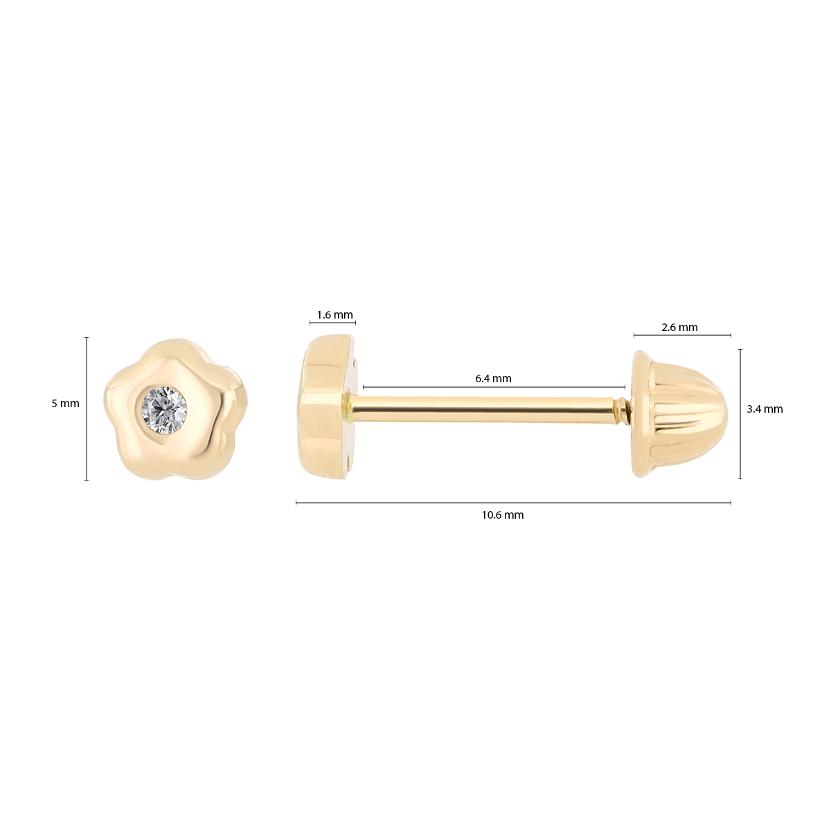 Aretes Bebé o Niña con Montadura 0.02 Quilates de Diamante en Oro Amarillo de 14 kt