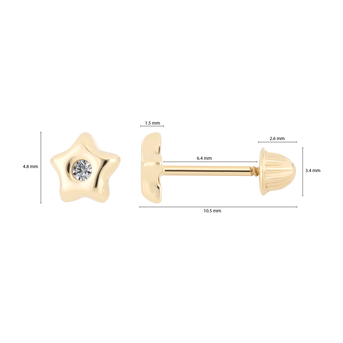 Aretes Bebé o Nña con Montadura 0.03 Quilates de Diamante en Oro Amarillo de 14 kt