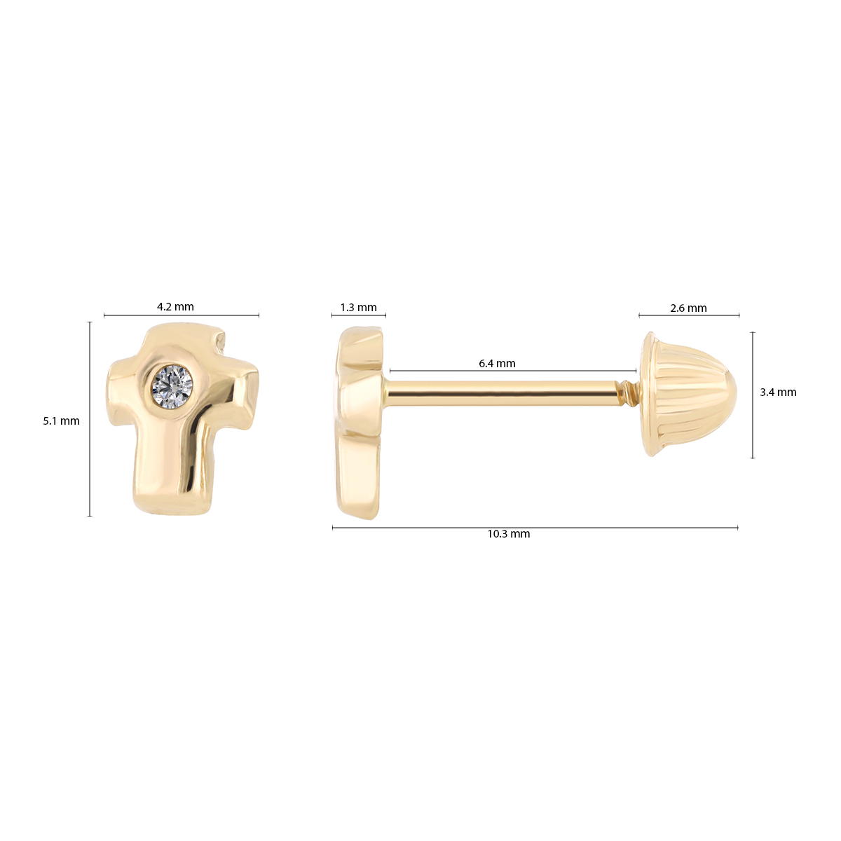 Aretes Bebé o Niña con Montadura 0.02 Quilates de Diamante en Oro Amarillo de 14 kt