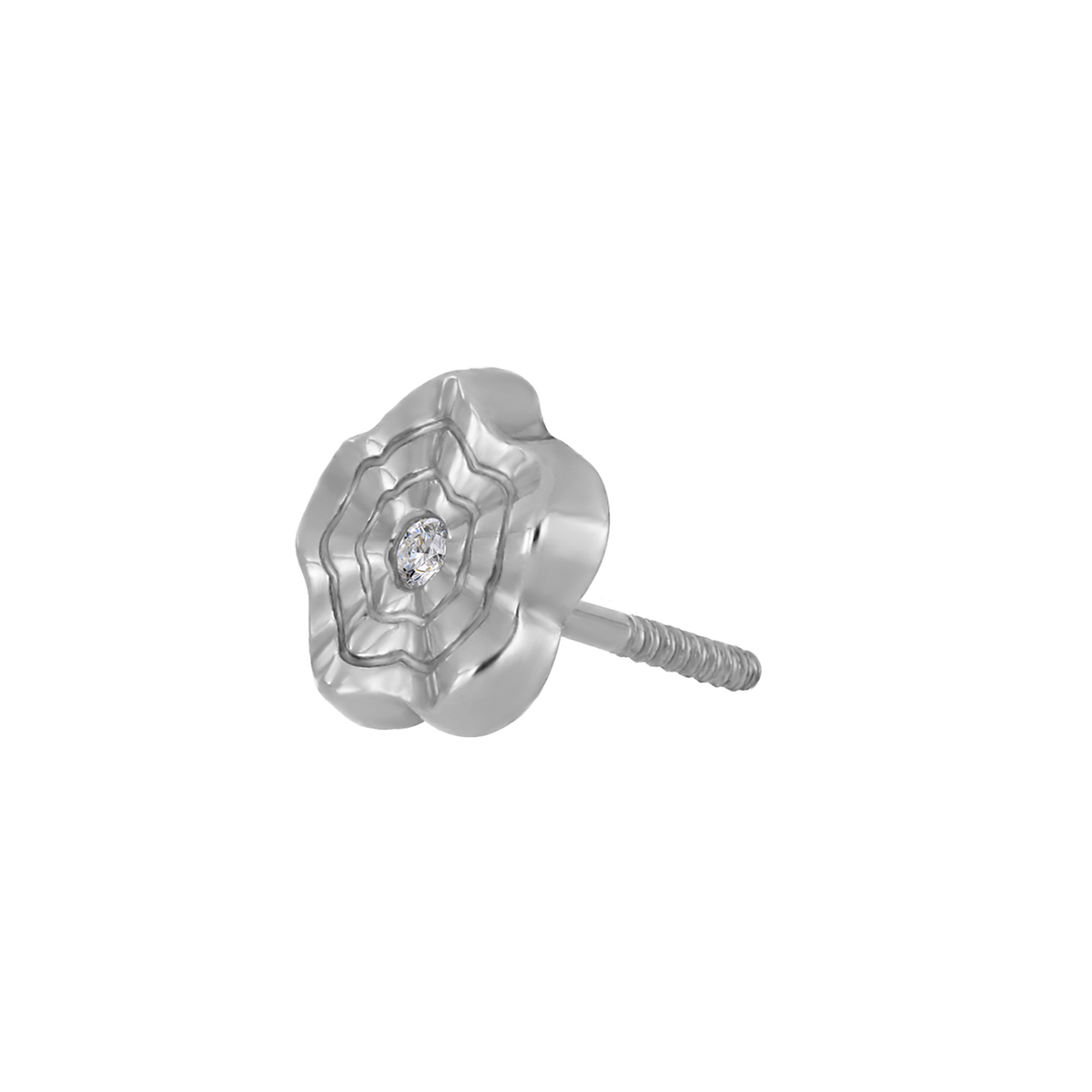 Aretes Bebé o Nña con Montadura 0.03 Quilates de Diamante en Oro Blanco de 14 kt