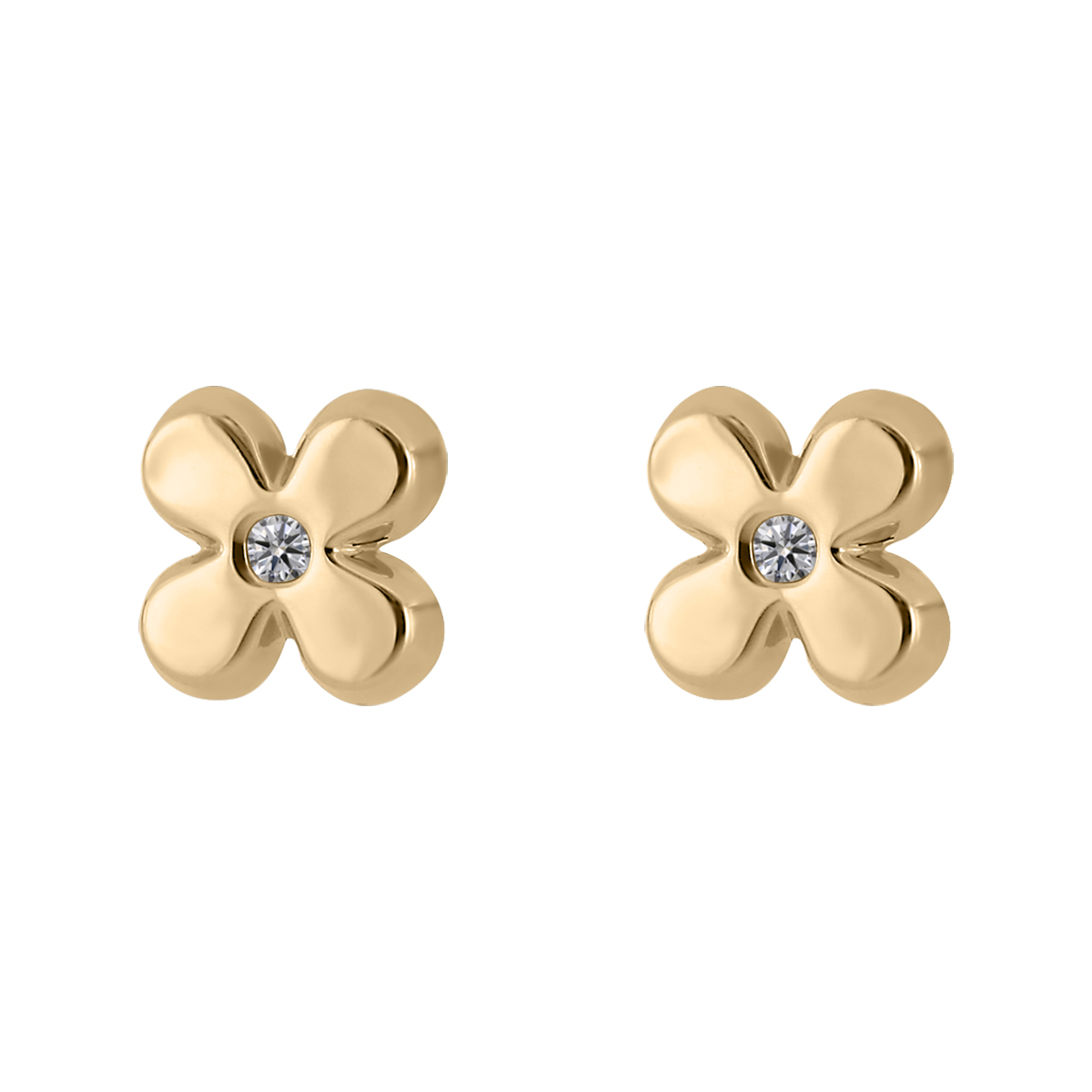 Aretes Bebé o Nña con Montadura 0.03 Quilates de Diamante en Oro Amarillo de 14 kt