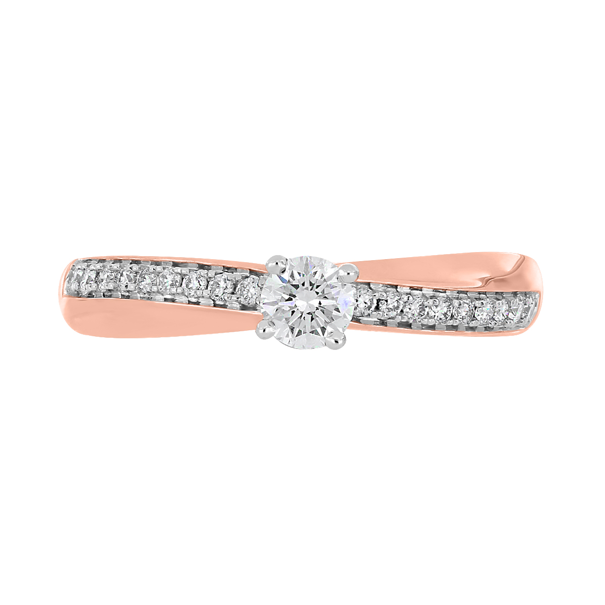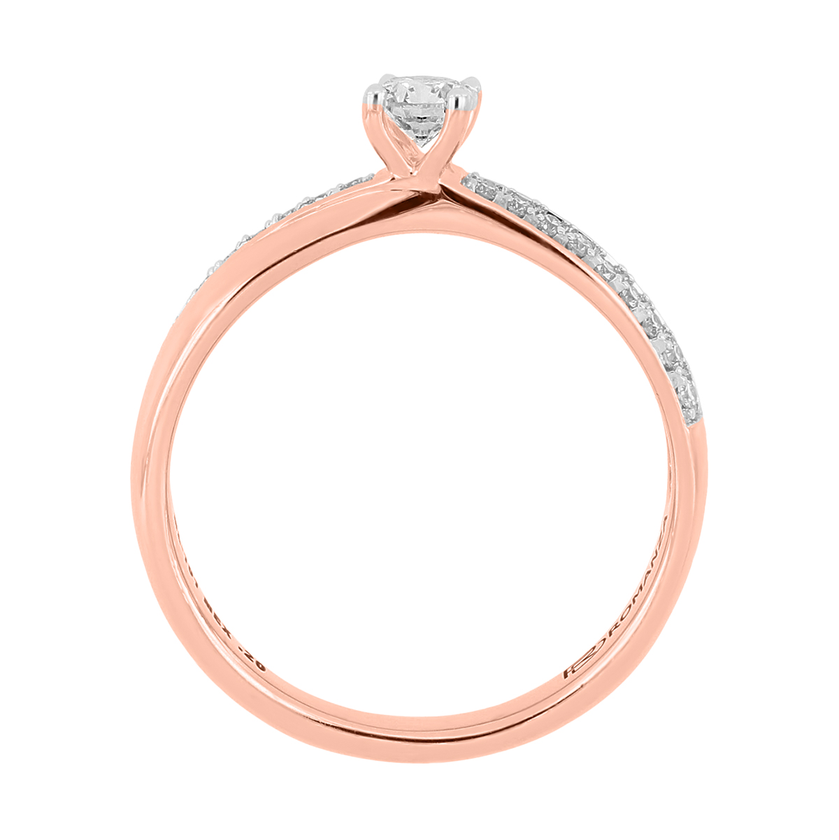Anillo Solitario con Centro 0.20 Quilates y Montadura 0.12 Quilates de Diamante en Oro Rosa de 14 kt