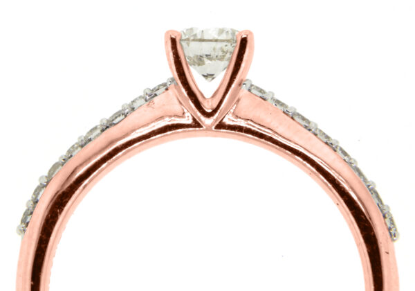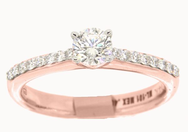 Anillo Solitario con Centro 0.40 Quilates y Montadura 0.19 Quilates de Diamante en Oro Rosa de 14 kt