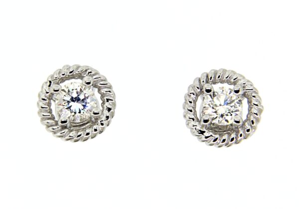 Broquel Dama con Centro 0.20 Quilates de Diamante en Oro Blanco de 14 kt