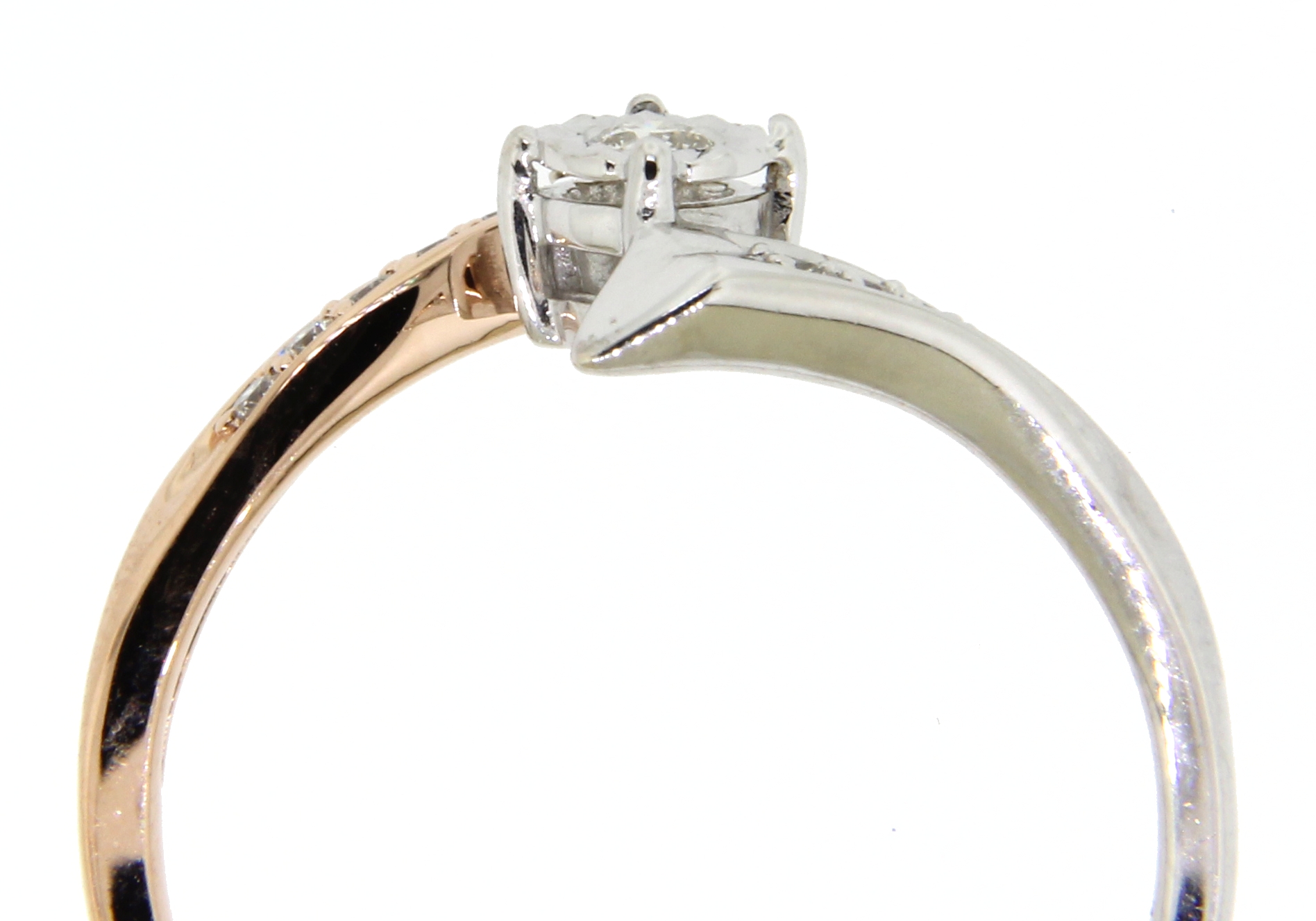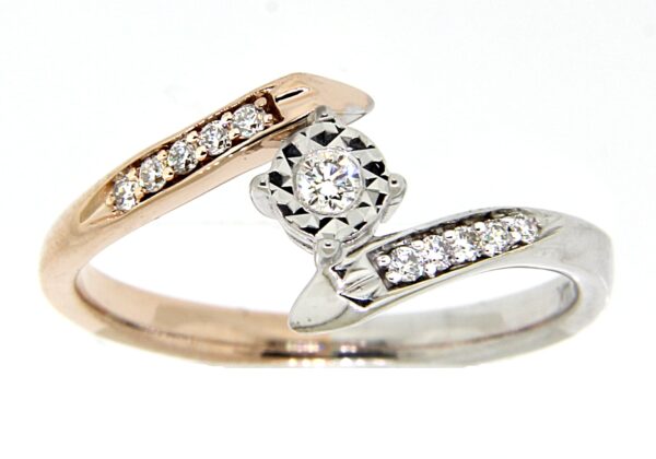Anillo Solitario Ilusión con Centro 0.06 Quilates de Diamante en Oro Combinado de 14 kt