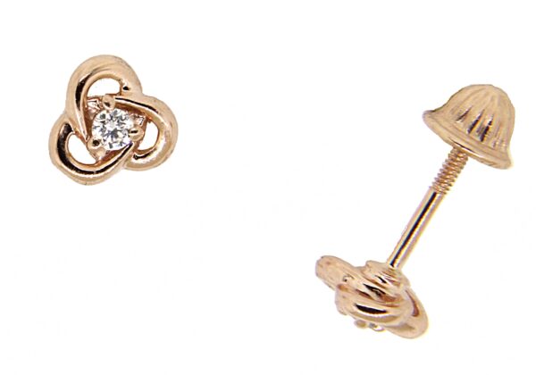 Aretes Bebé o Niña con Montadura 0.02 Quilates de Diamante en ORO ROSA de 14 kt