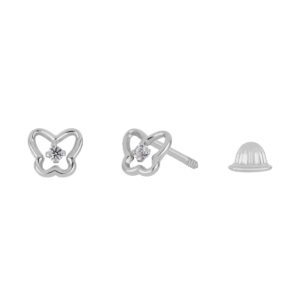 Aretes Bebé o Niña con Centro 0.05 Quilates de Diamante en Oro Rosa de 14 kt