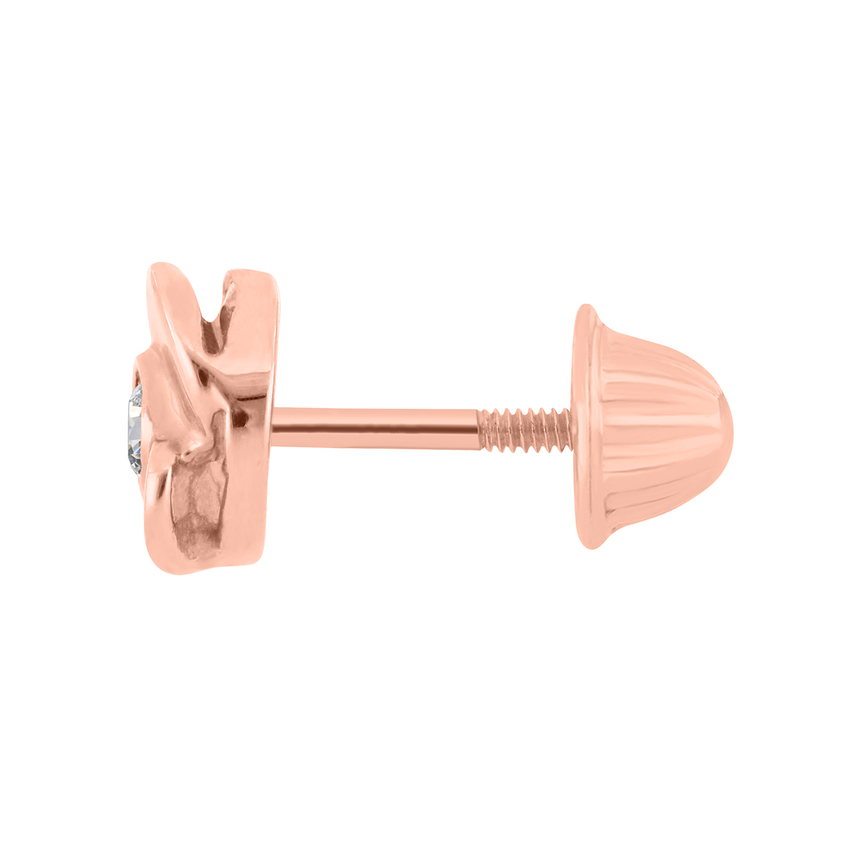 Aretes Bebé o Niña con Centro 0.04 Quilates de Diamante en Oro Rosa de 14 kt