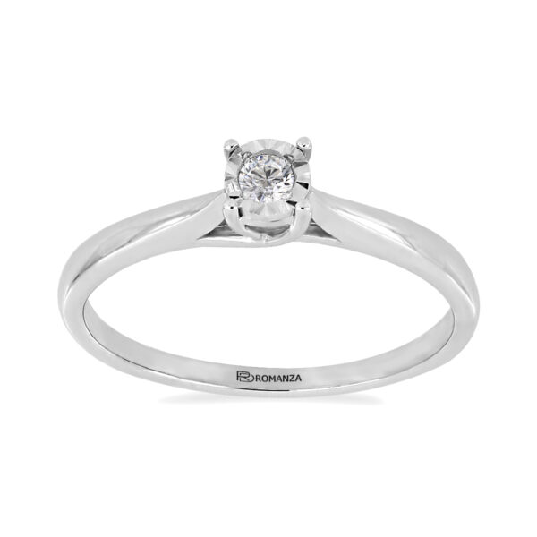 Anillo Solitario Ilusión con Centro 0.06 Quilates de Diamante en Oro Blanco de 14 kt