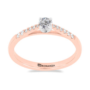 Anillo Solitario con Centro 0.17 Quilates y Montadura 0.12 Quilates de Diamante en Oro Rosa de 14 kt