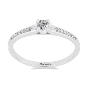 Anillo Solitario con Centro 0.17 Quilates y Montadura 0.05 Quilates de Diamante en Oro Blanco de 14 kt