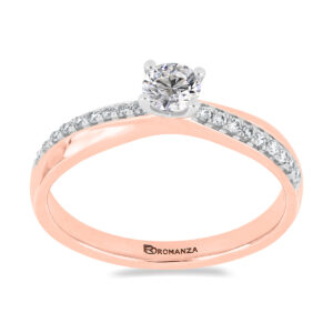 Anillo Solitario con Centro 0.25 Quilates y Montadura 0.14 Quilates de Diamante en Oro Rosa de 14 kt