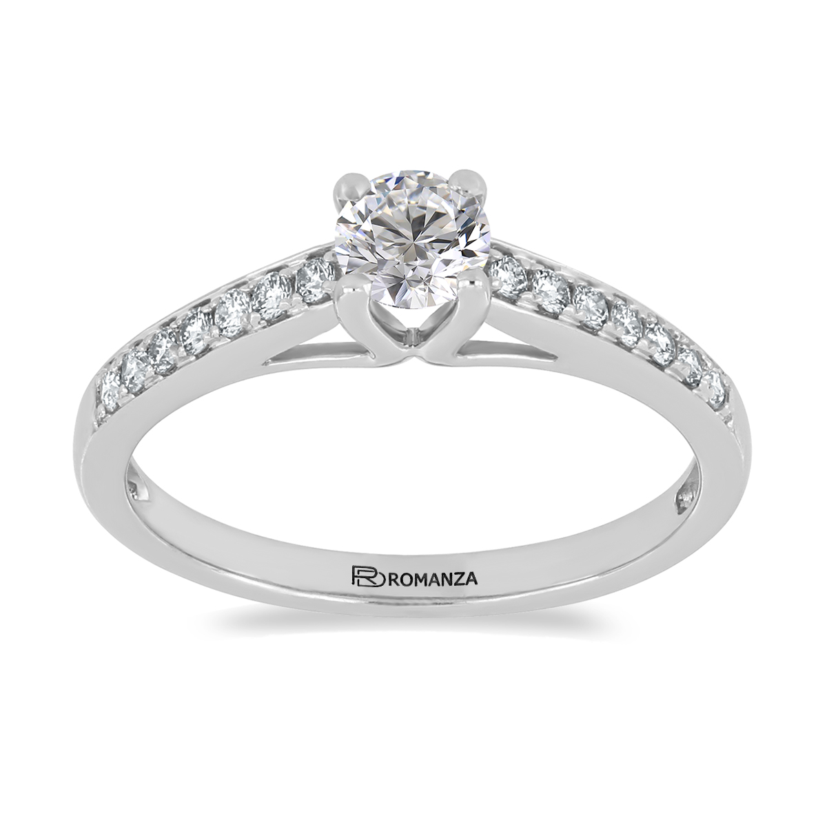Anillo Solitario con Centro 0.30 Quilates y Montadura 0.12 Quilates de Diamante en ORO BLANCO de 14 kt