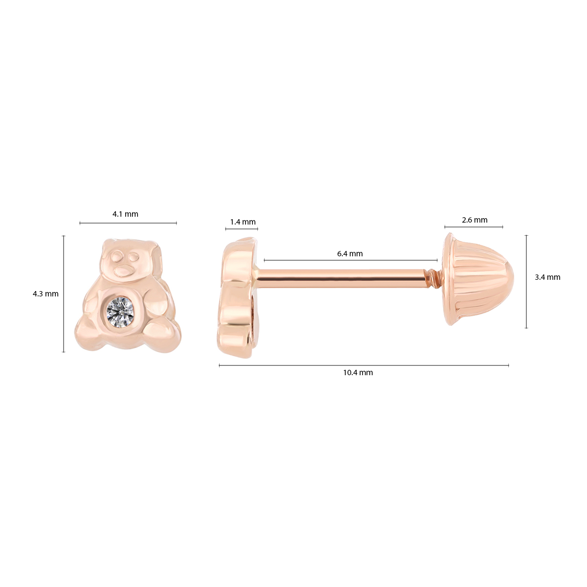 Aretes Bebé o Niña con Montadura 0.02 Quilates de Diamante en Oro Rosa de 14 kt