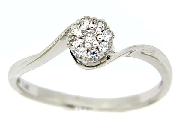 Anillo Solitario Roseta con Montadura 0.15 Quilates de Diamante en Oro Blanco de 14 kt