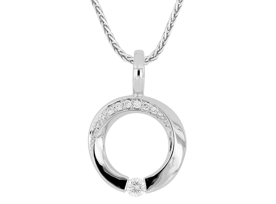 Dije con Montadura 0.15 Quilates de Diamante en Oro Blanco de 14 kt