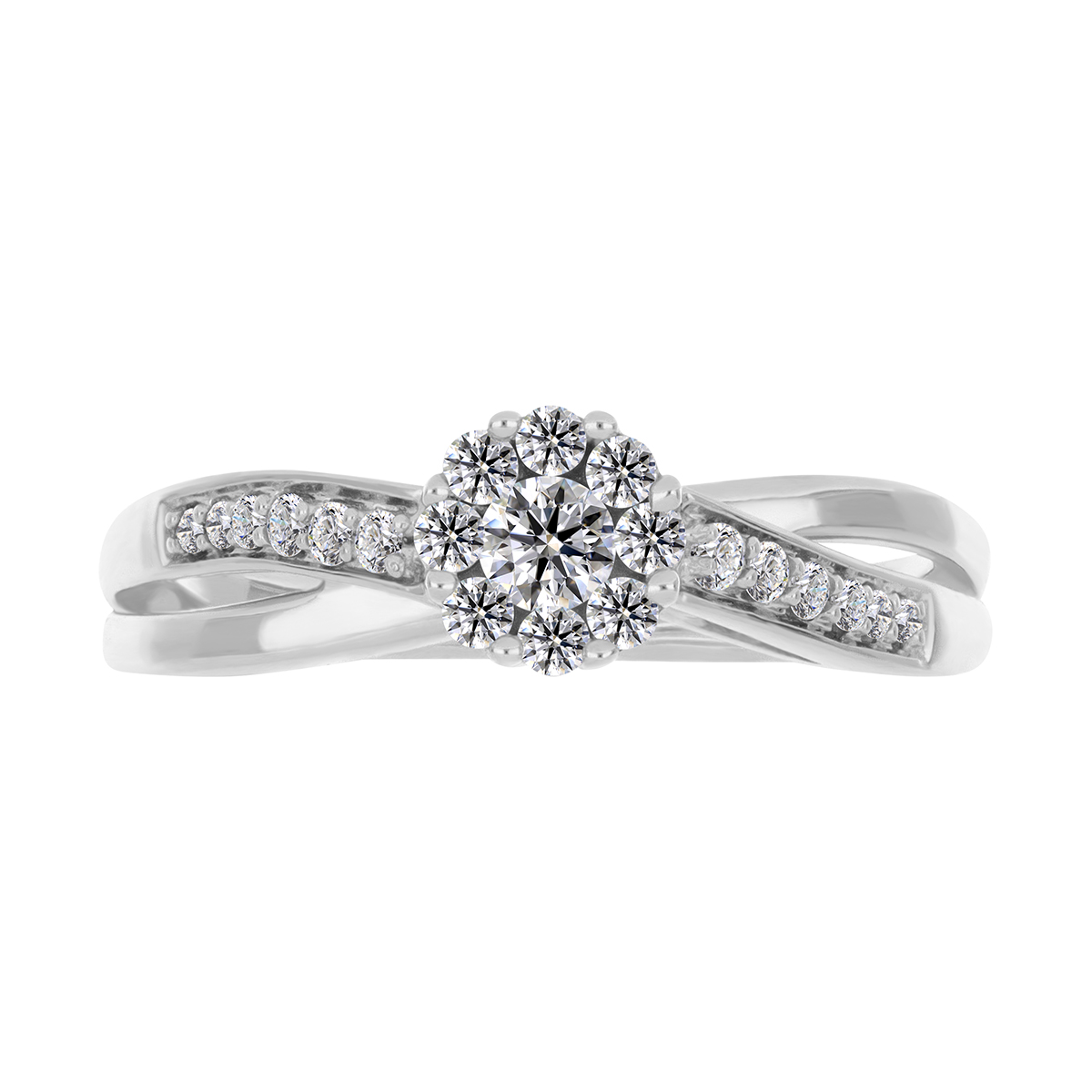 Anillo Solitario Roseta con Montadura 0.33 Quilates de Diamante en Oro Blanco de 14 kt