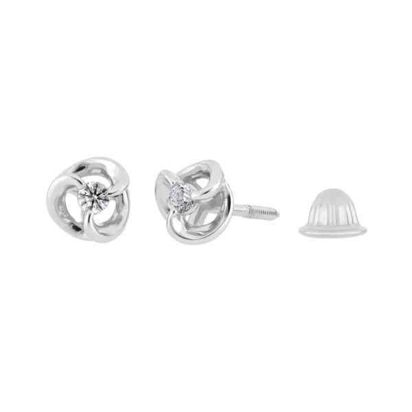 Aretes Bebé o Niña con Montadura 0.03 Quilates de Diamante en ORO BLANCO de 14 kt
