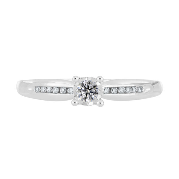 Anillo Solitario Ilusión con Montadura 0.16 Quilates de Diamante en Oro Blanco de 14 kt