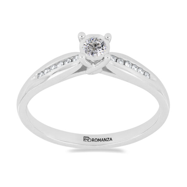 Anillo Solitario Ilusión con Centro 0.07 Quilates de Diamante en Oro Blanco de 14 kt