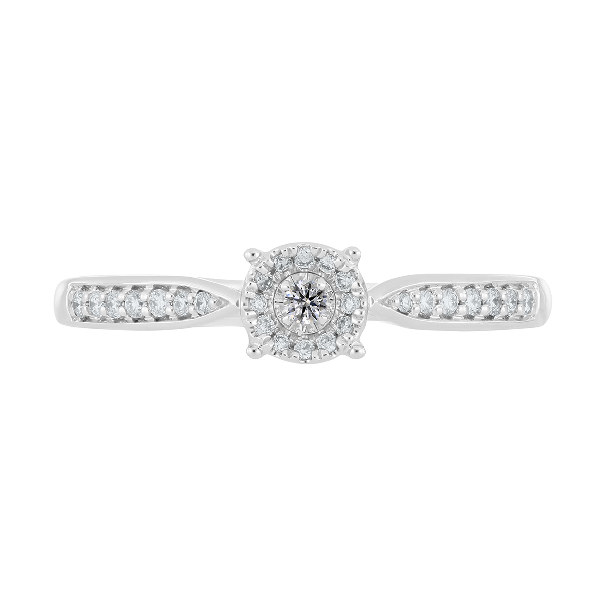 Anillo Solitario Ilusión con Montadura 0.11 Quilates de Diamante en Oro Blanco de 14 kt