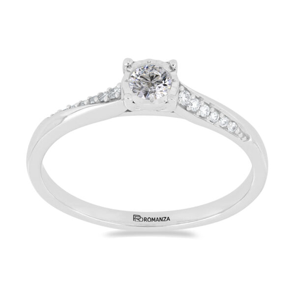 Anillo Solitario con Centro 0.10 Quilates y Montadura 0.06 Quilates de Diamante en Oro Blanco de 14 kt