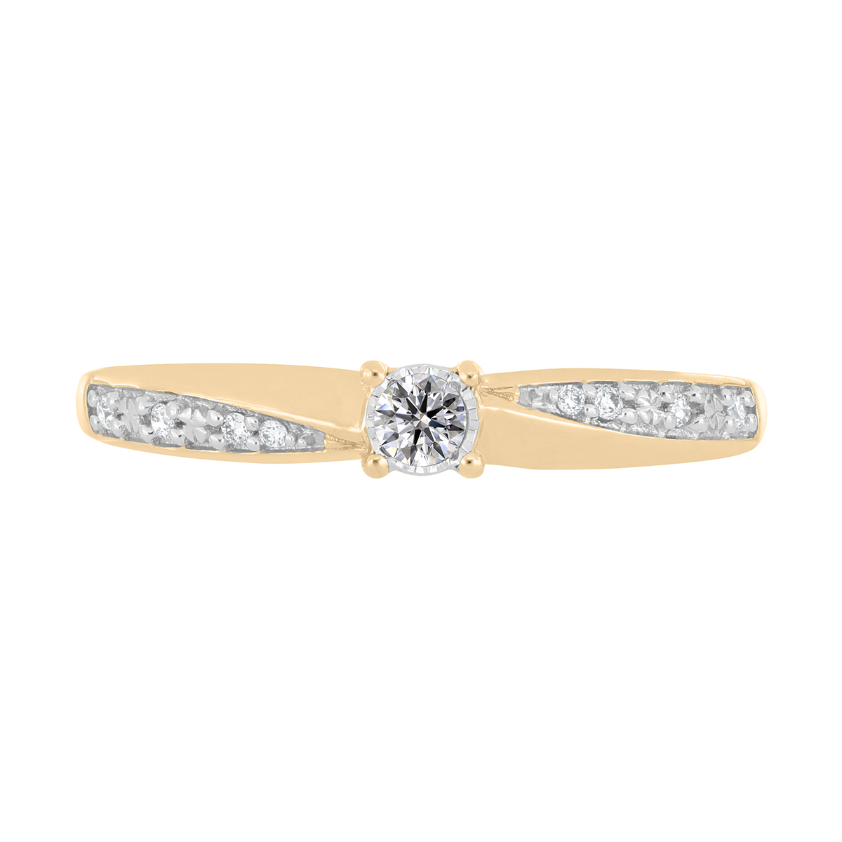 Anillo Solitario Ilusión con Montadura 0.10 Quilates de Diamante en Oro Amarillo de 14 kt