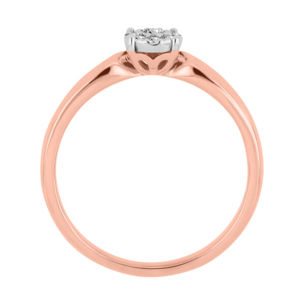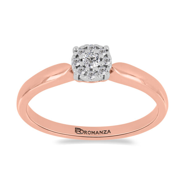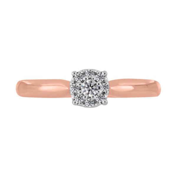 Anillo Solitario Roseta con Montadura 0.12 Quilates de Diamante en Oro Rosa de 14 kt