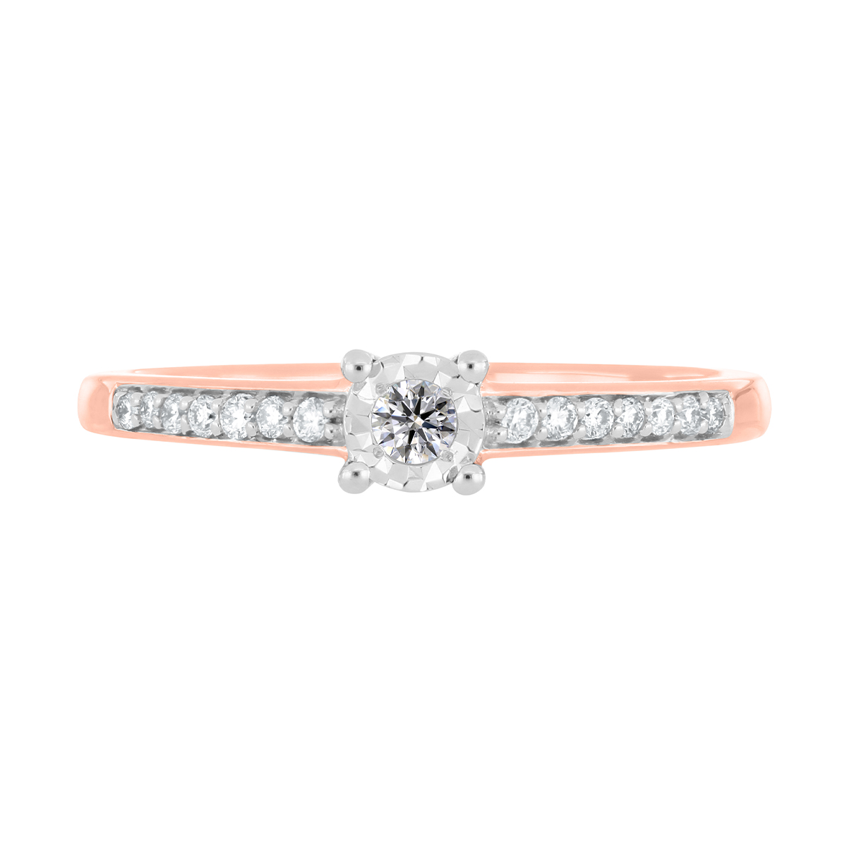 Anillo Solitario Ilusión con Montadura 0.15 Quilates de Diamante en Oro Rosa de 14 kt