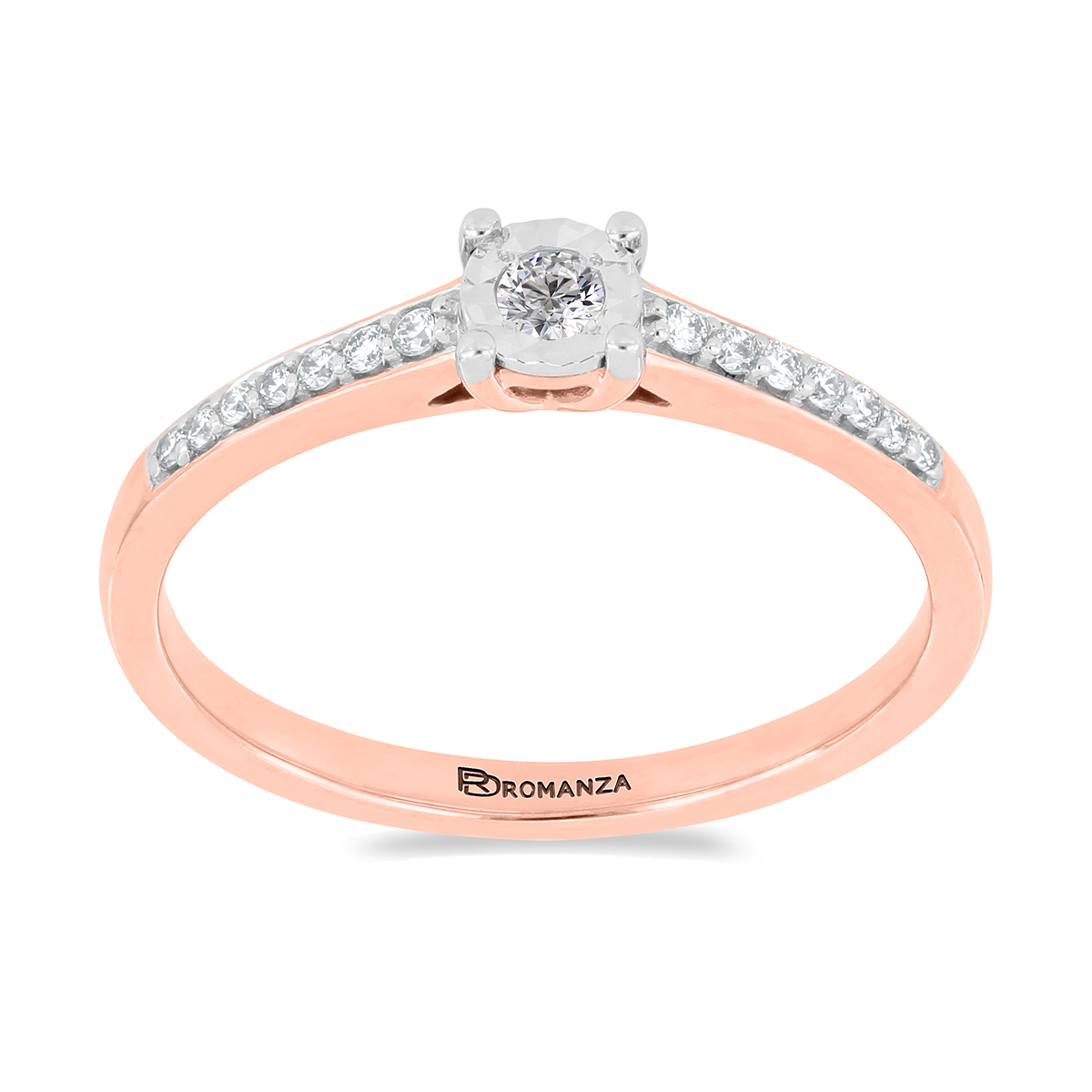 Anillo Solitario Ilusión con Montadura 0.16 Quilates de Diamante en Oro Rosa de 14 kt