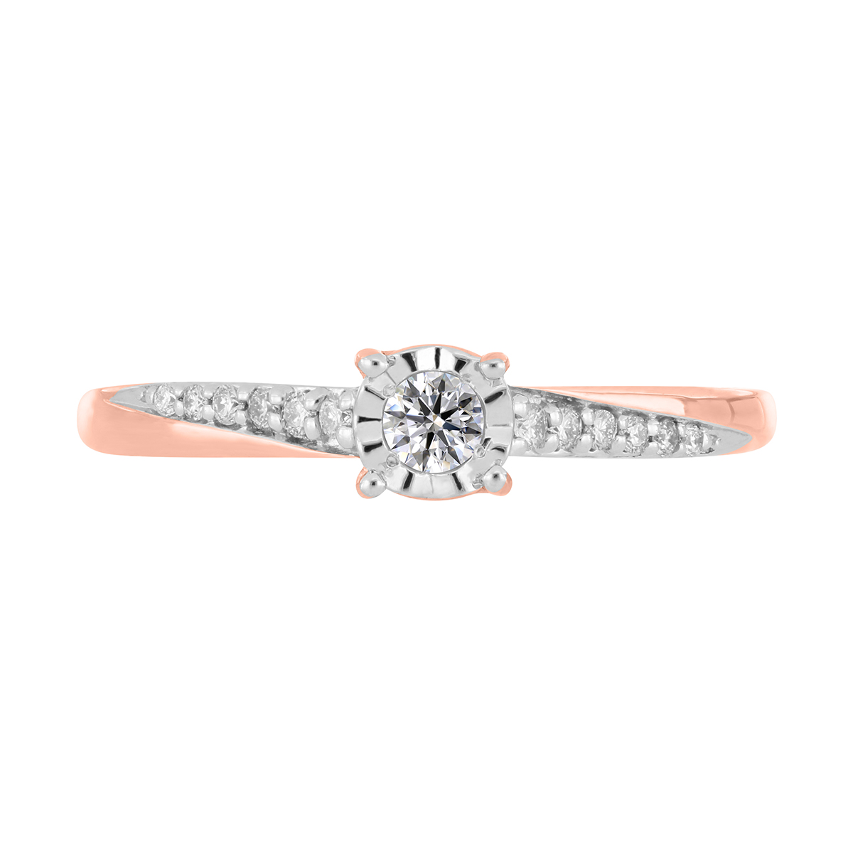 Anillo Solitario Ilusión con Montadura 0.16 Quilates de Diamante en Oro Rosa de 14 kt
