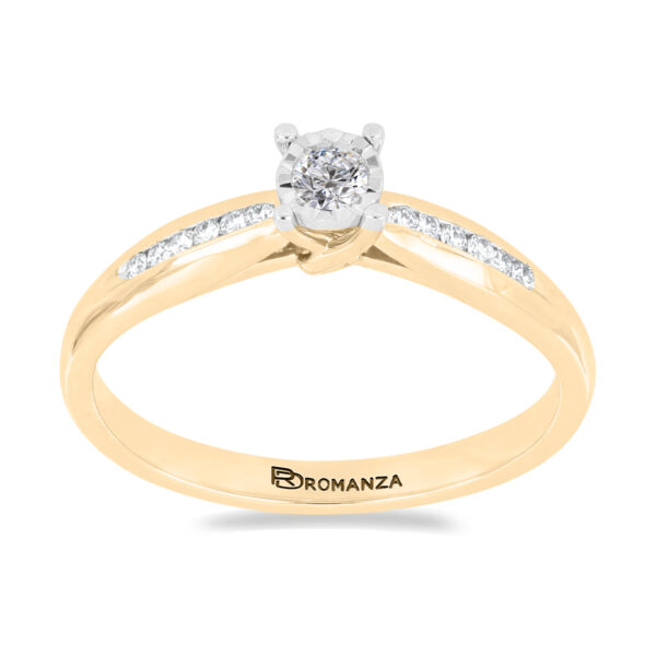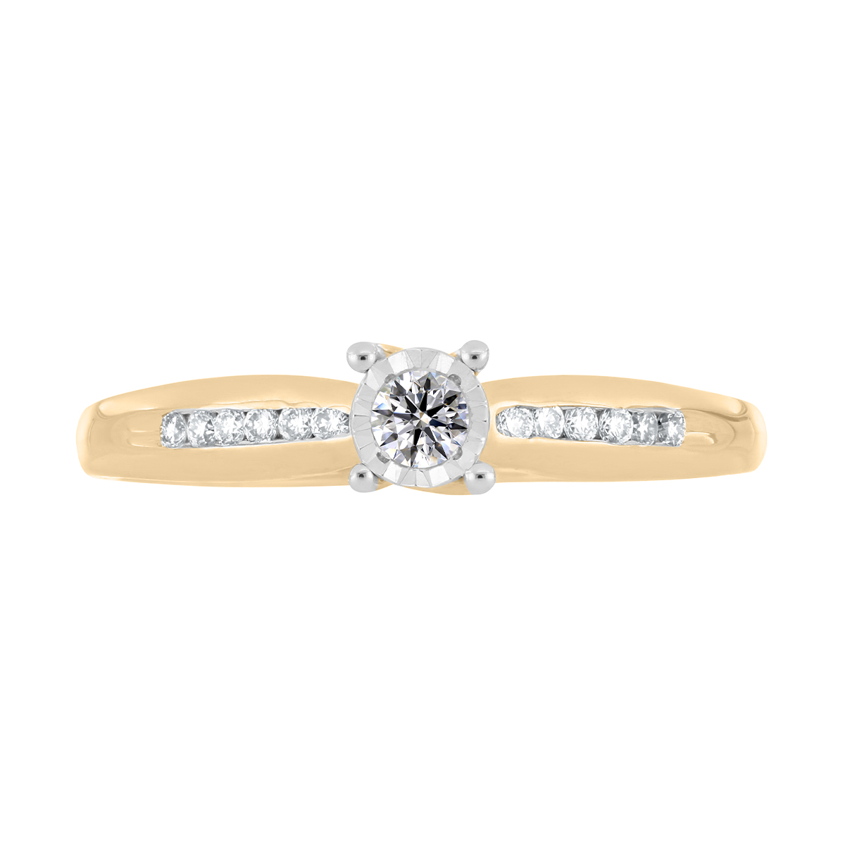 Anillo Solitario Ilusión con Montadura 0.15 Quilates de Diamante en Oro Amarillo de 14 kt