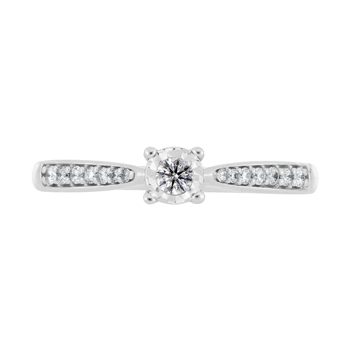 Anillo Solitario Ilusión con Montadura 0.15 Quilates de Diamante en Oro Blanco de 14 kt
