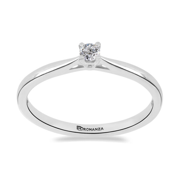 Anillo Solitario con Centro 0.10 Quilates de Diamante en Oro Blanco de 14 kt