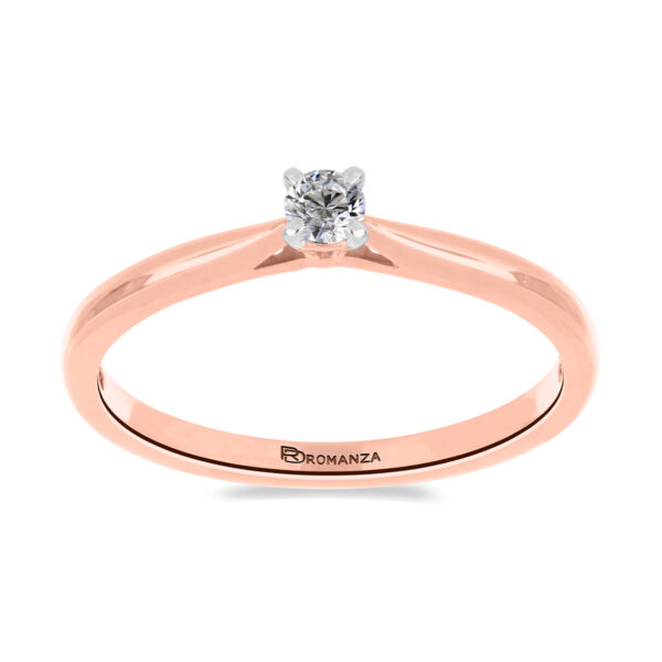 Anillo Solitario con Centro 0.10 Quilates de Diamante en Oro Rosa de 14 kt