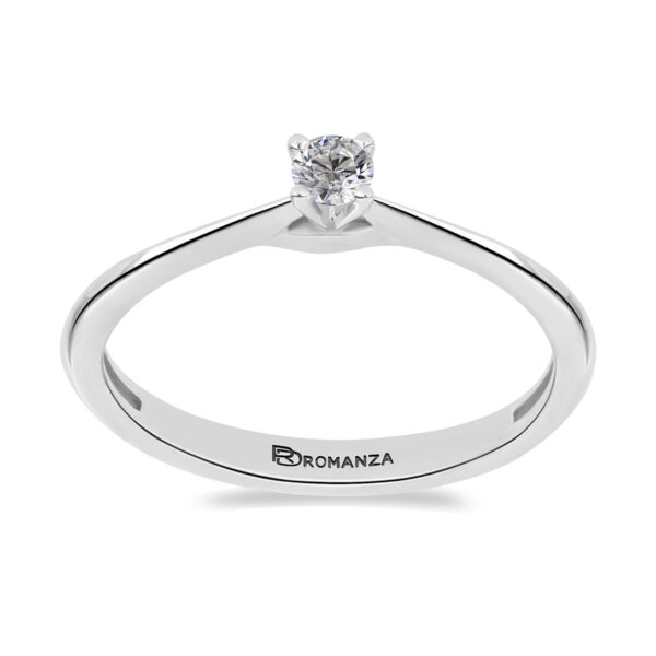 Anillo Solitario con Centro 0.10 Quilates de Diamante en Oro Blanco de 14 kt