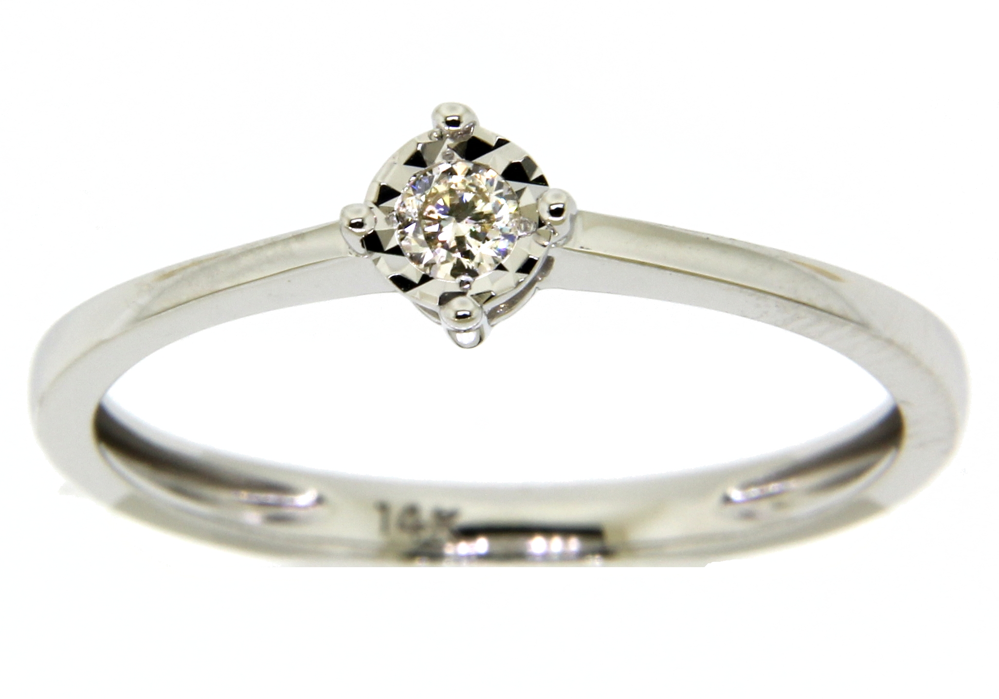 Anillo Solitario Ilusión con Montadura 0.15 Quilates de Diamante en Oro Blanco de 14 kt