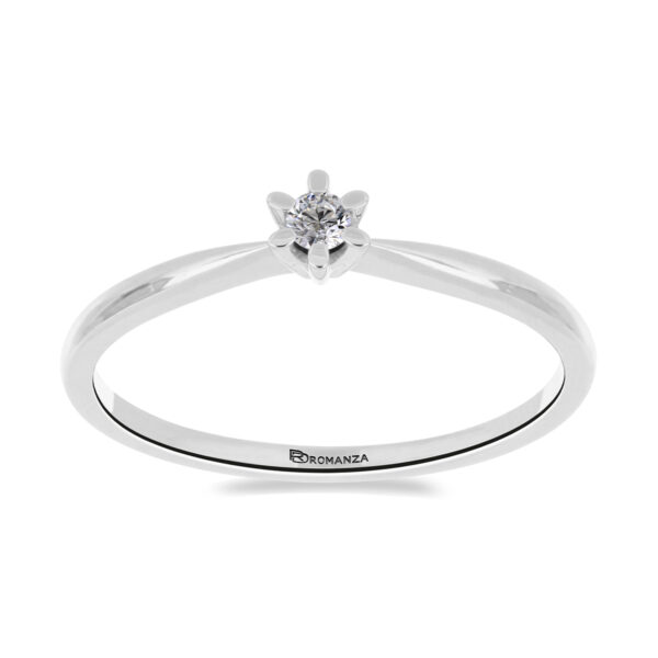 Anillo Solitario con Centro 0.15 Quilates de Diamante en ORO BLANCO de 14 kt