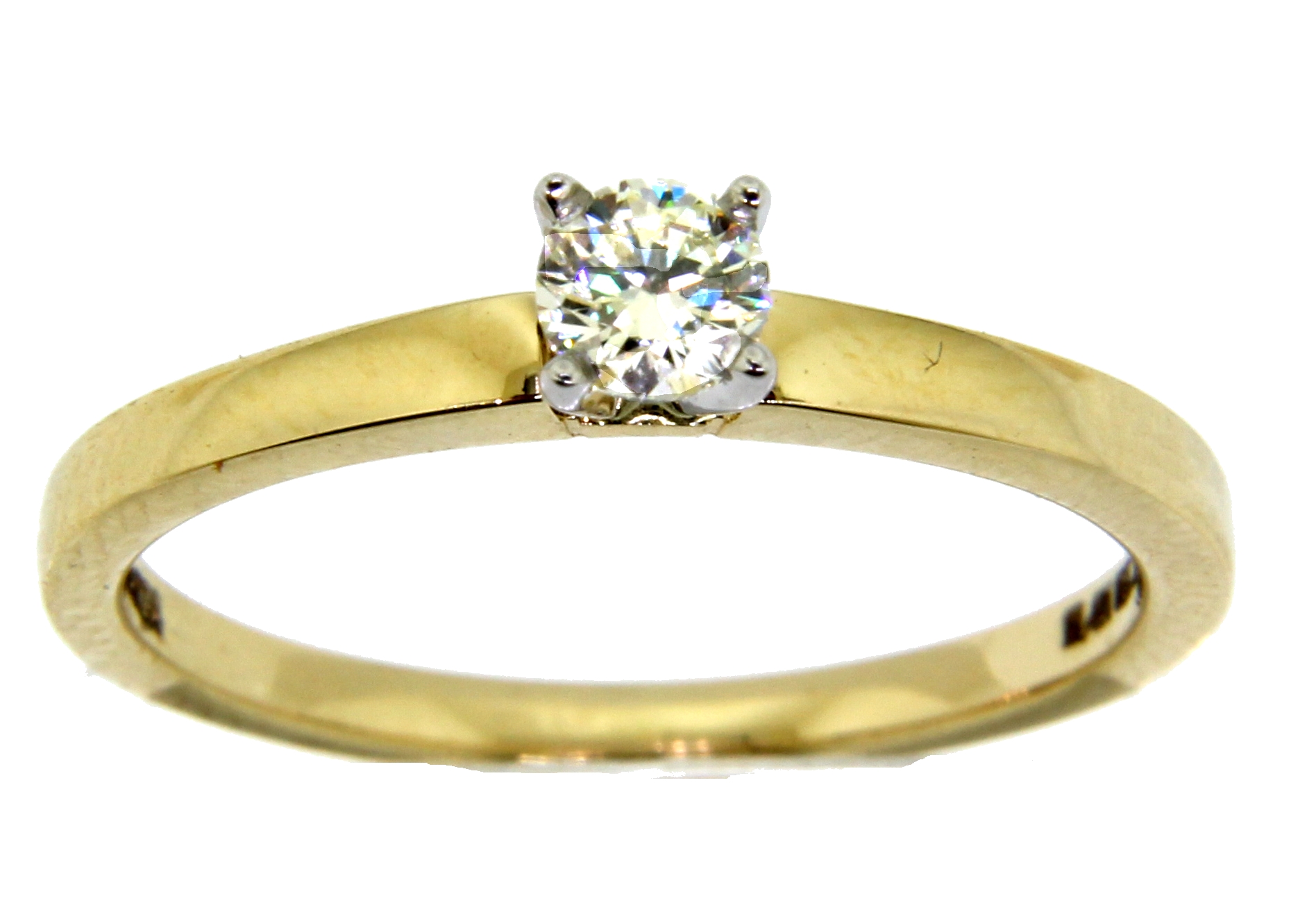 Anillo Solitario con Centro 0.25 Quilates de Diamante en Oro Amarillo de 14 kt