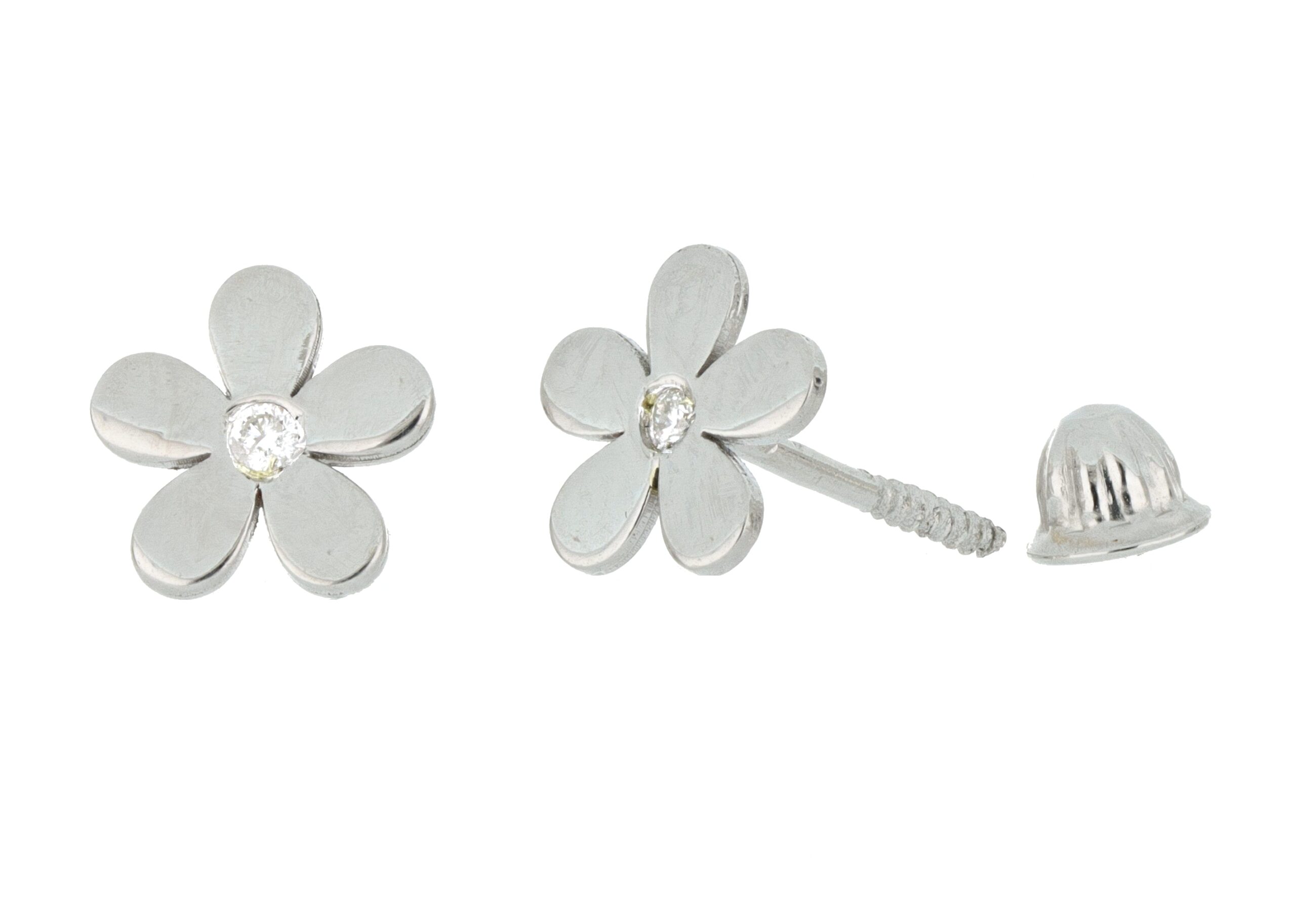 Aretes Bebé o Niña con Montadura 0.02 Quilates de Diamante en Oro Blanco de 14 kt
