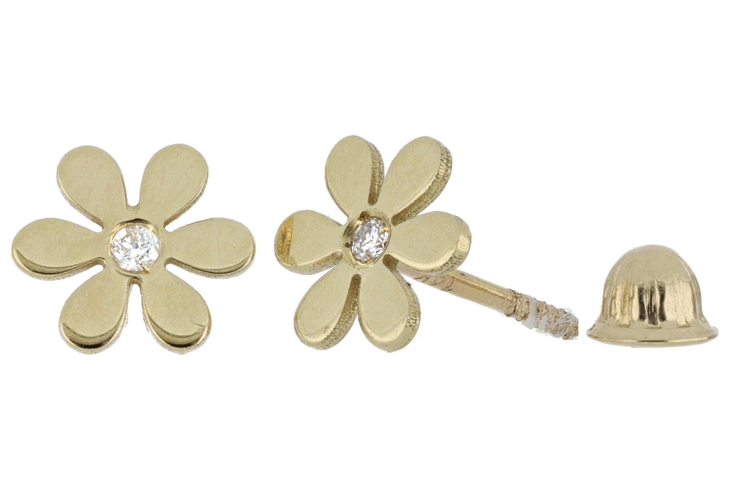 Aretes Bebé o Niña con Montadura 0.02 Quilates de Diamante en Oro Amarillo de 14 kt
