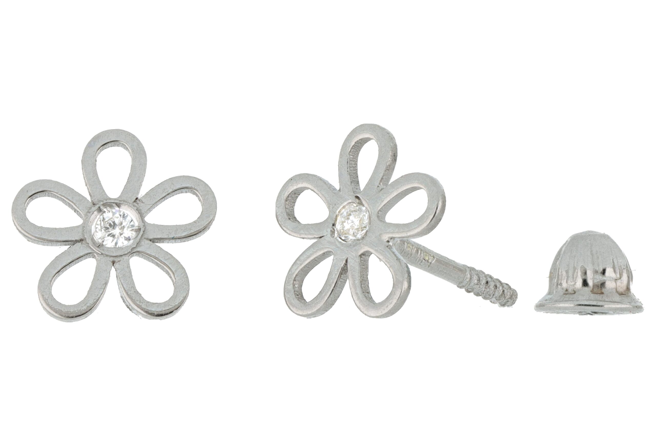 Aretes Bebé o Niña con Montadura 0.03 Quilates de Diamante en ORO BLANCO de 14 kt