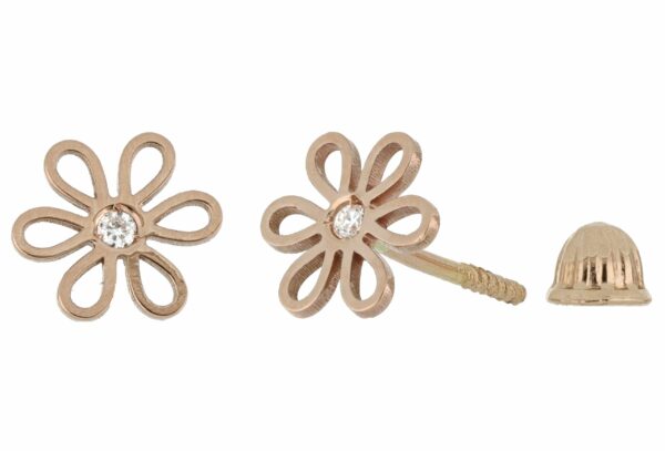 Aretes Bebé o Niña con Montadura 0.02 Quilates de Diamante en ORO ROSA de 14 kt